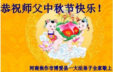 河南焦作市博爱县一大法弟子全家恭祝师父中秋节快乐!