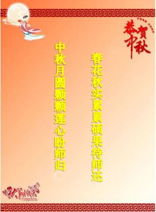 在正法最后的时间弟子一定紧跟师父正法進程,分秒必争,多学法,背法,去掉最后的执着,跳出人,做好三件事,多救人,完成使命,跟师父回家。 河南周口大法弟子恭祝师尊中秋节快乐!