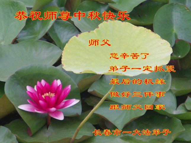 弟子恭祝师尊中秋快乐!在剩不多的时间里,弟子一定抓紧时间,做好三件事。 叩谢师尊慈悲苦度。合十。 吉林省长春大法弟子恭祝师尊中秋节快乐!