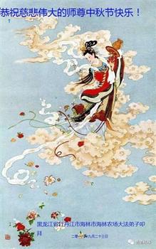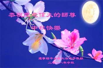 在中国大陆邪恶迫害的环境里,弟子现在还有一些人心和执着,求师尊加持弟子的正念,多学法,去执着,做好三件事,随师把家还。弟子叩拜。 四川省绵阳市大法弟子恭祝师尊中秋快乐!