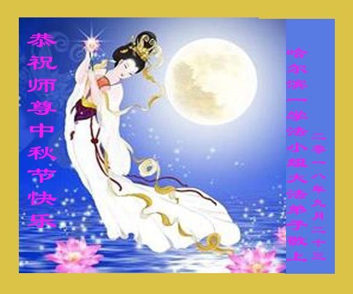 黑龙江省哈尔滨市俩人学法小组大法弟子恭祝师尊中秋快乐!