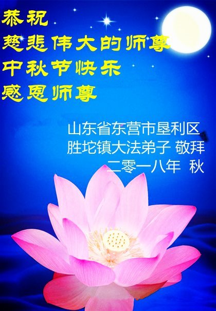 山东省东营市垦利区胜坨镇大法弟子恭祝慈悲伟大的师尊中秋节快乐!