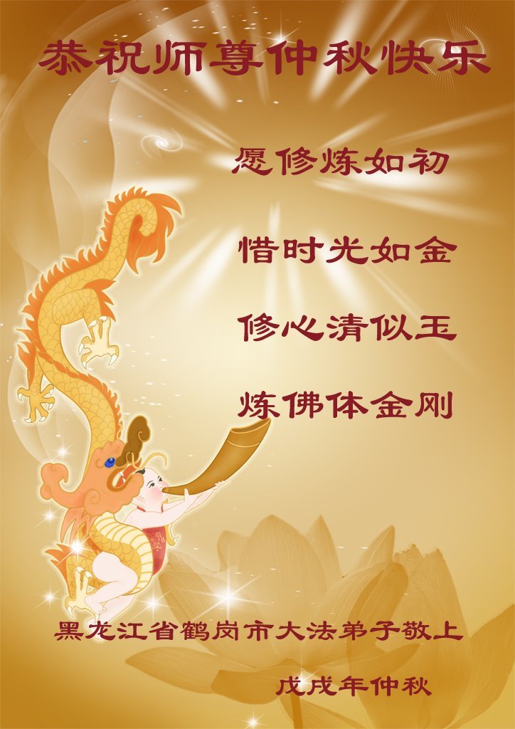 黑龙江省鹤岗市大法弟子恭祝师尊中秋快乐!