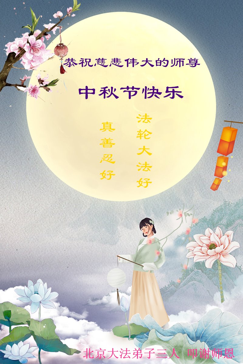 北京大法弟子三人同祝慈悲伟大的师尊中秋节快乐!