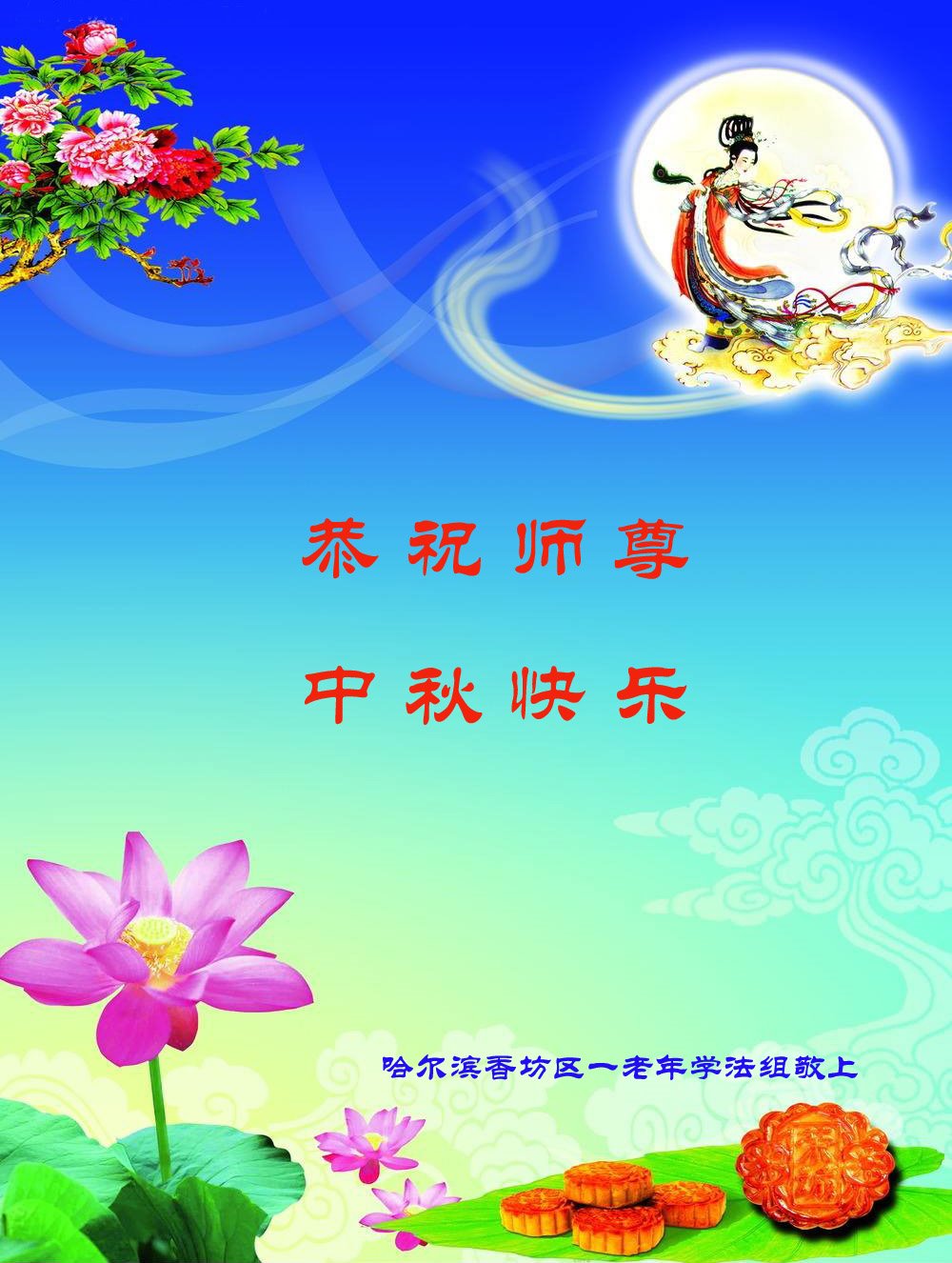 黑龙江省哈尔滨大法弟子恭祝慈悲伟大的师尊中秋快乐!