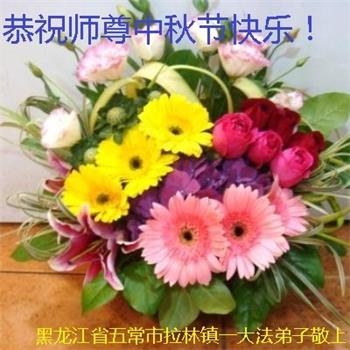 黑龙江省哈尔滨市五常市拉林镇一大法弟子恭祝师尊中秋节快乐!