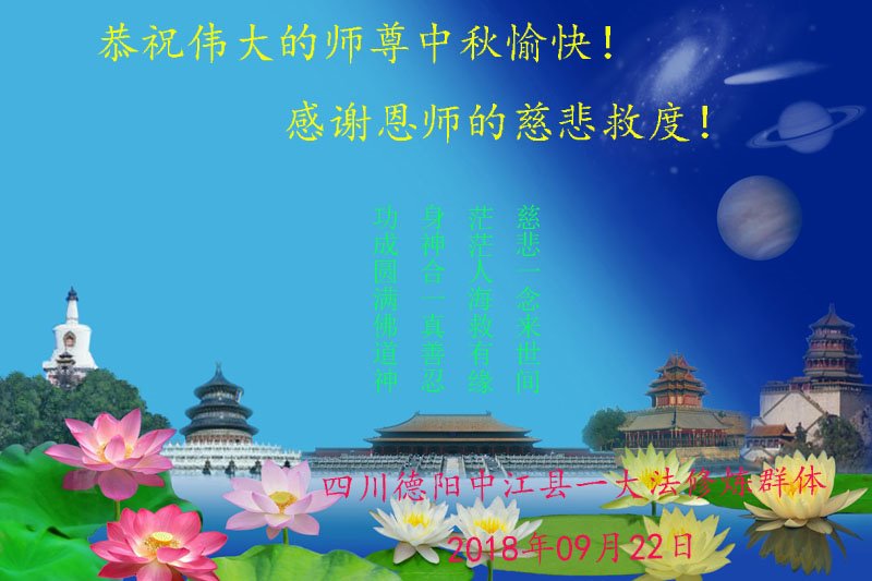 慈悲一念来世间 茫茫人海救有缘 身神合一真善忍 功成圆满佛道神 大陆一大法弟子恭祝师尊中秋节快乐!