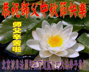 北京丰台区花乡地区一大法弟子及其被非法关押在黑窝的妻子同修共同恭祝慈悲伟大师父中秋节快乐!