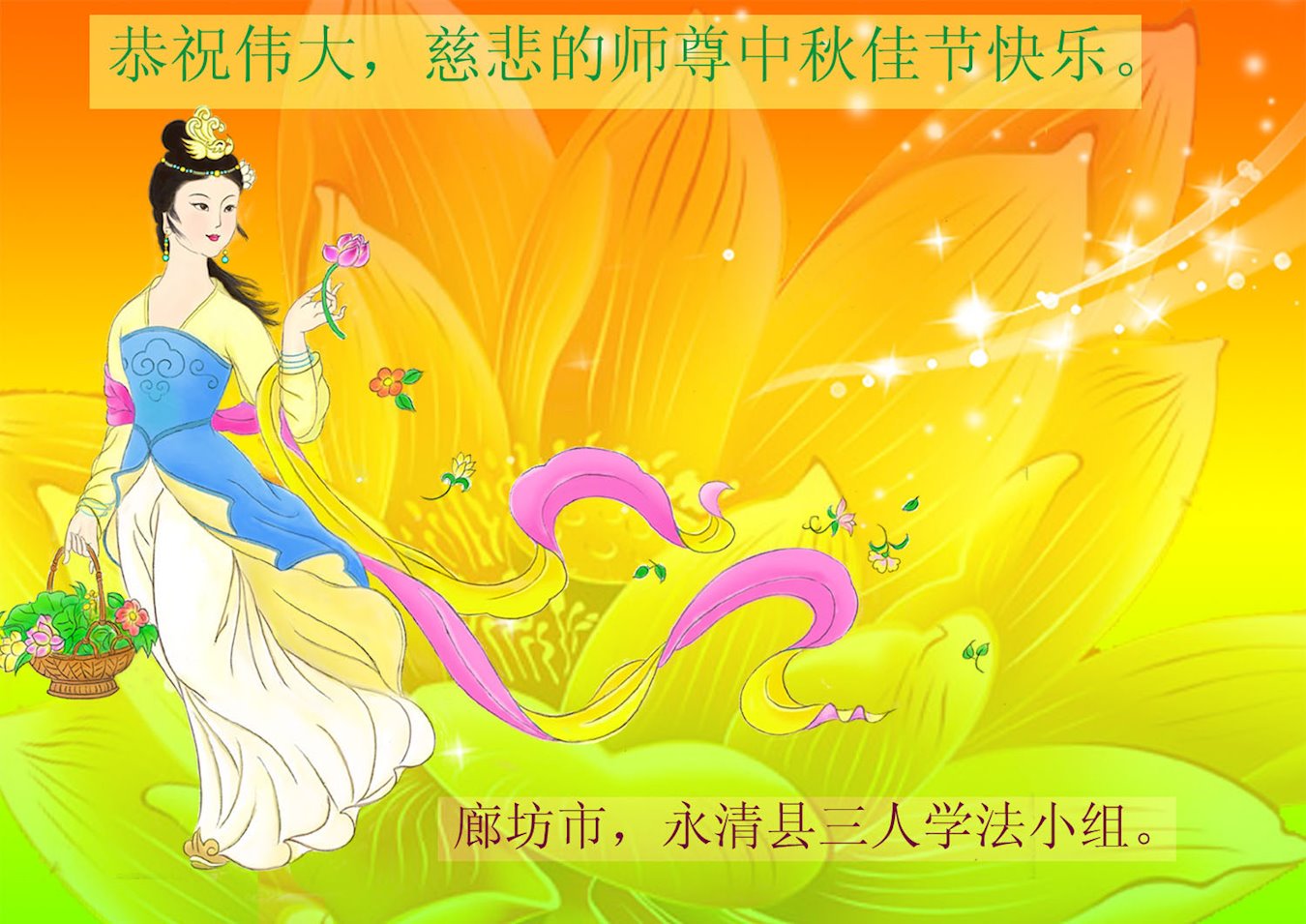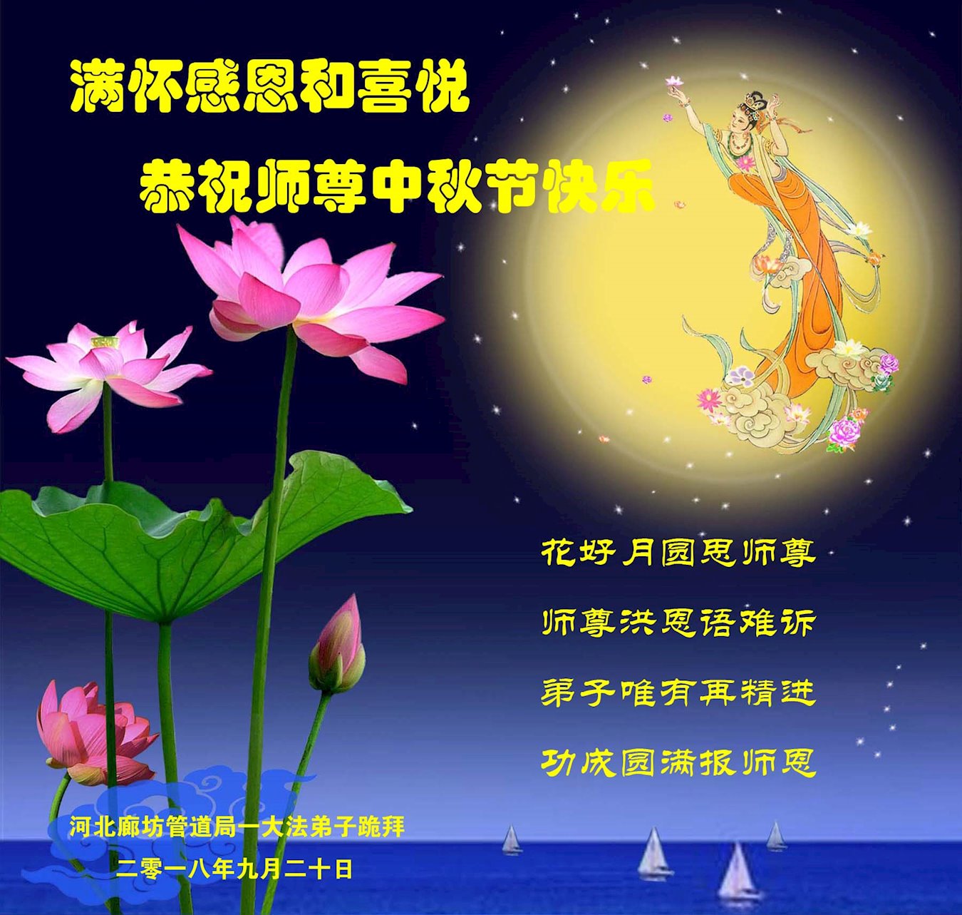 我们会一如既往的按照师尊的要求做好三件事,请师尊放心。 廊坊大法弟子 河北廊坊大法弟子恭祝师尊中秋节快乐!