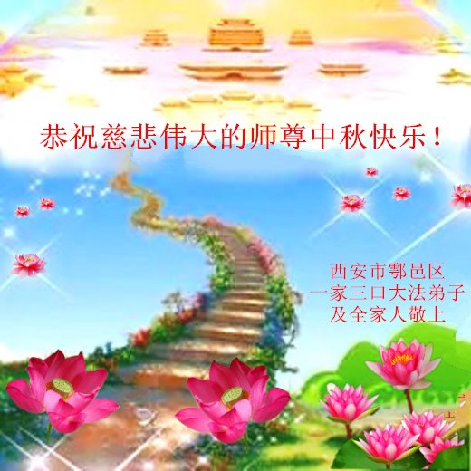 陕西省西安市一家庭大法弟子祝师父中秋快乐!