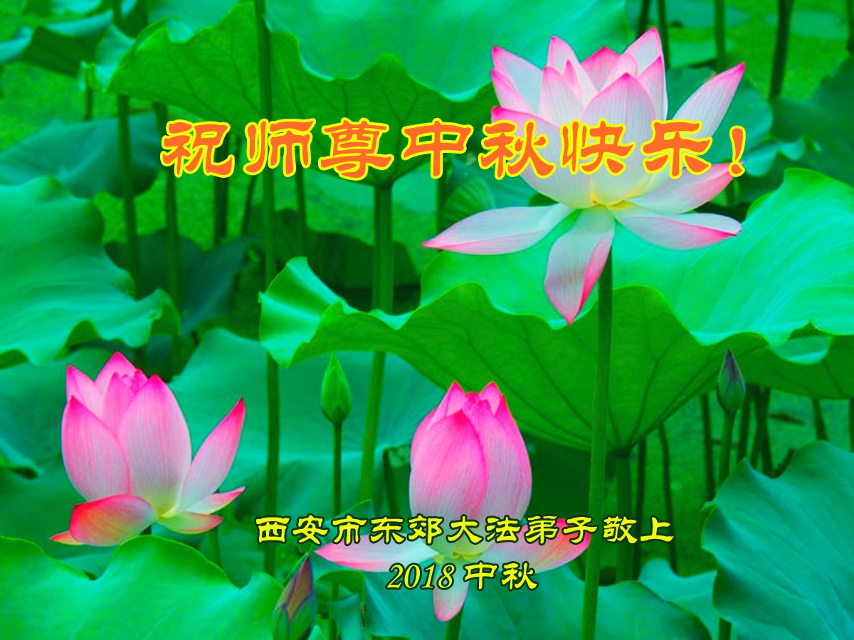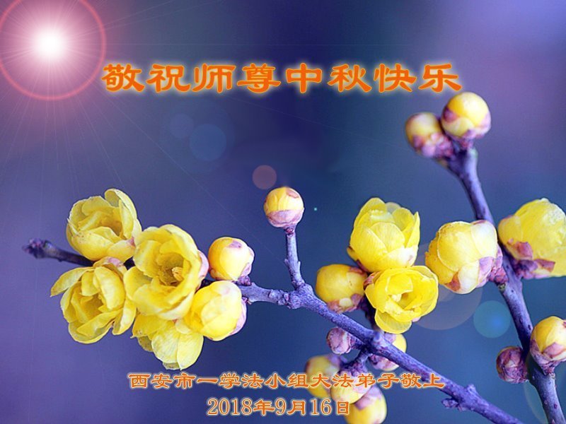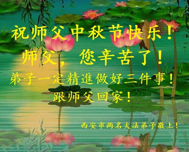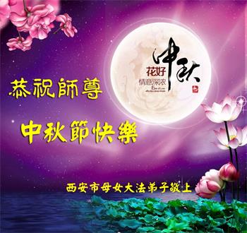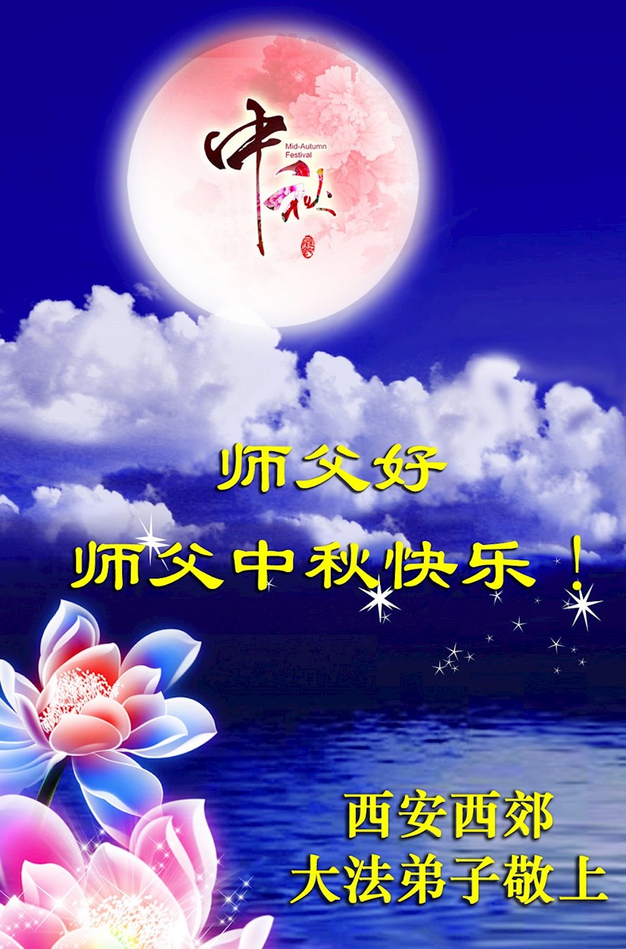 师尊,您辛苦了!弟子们想念您,弟子们永远追随您!师恩深重,无言能表,无以为报,弟子们唯有互相帮助,努力做好三件事,勇猛精進! 陕西省西安东郊大法弟子恭祝师父中秋节快乐!