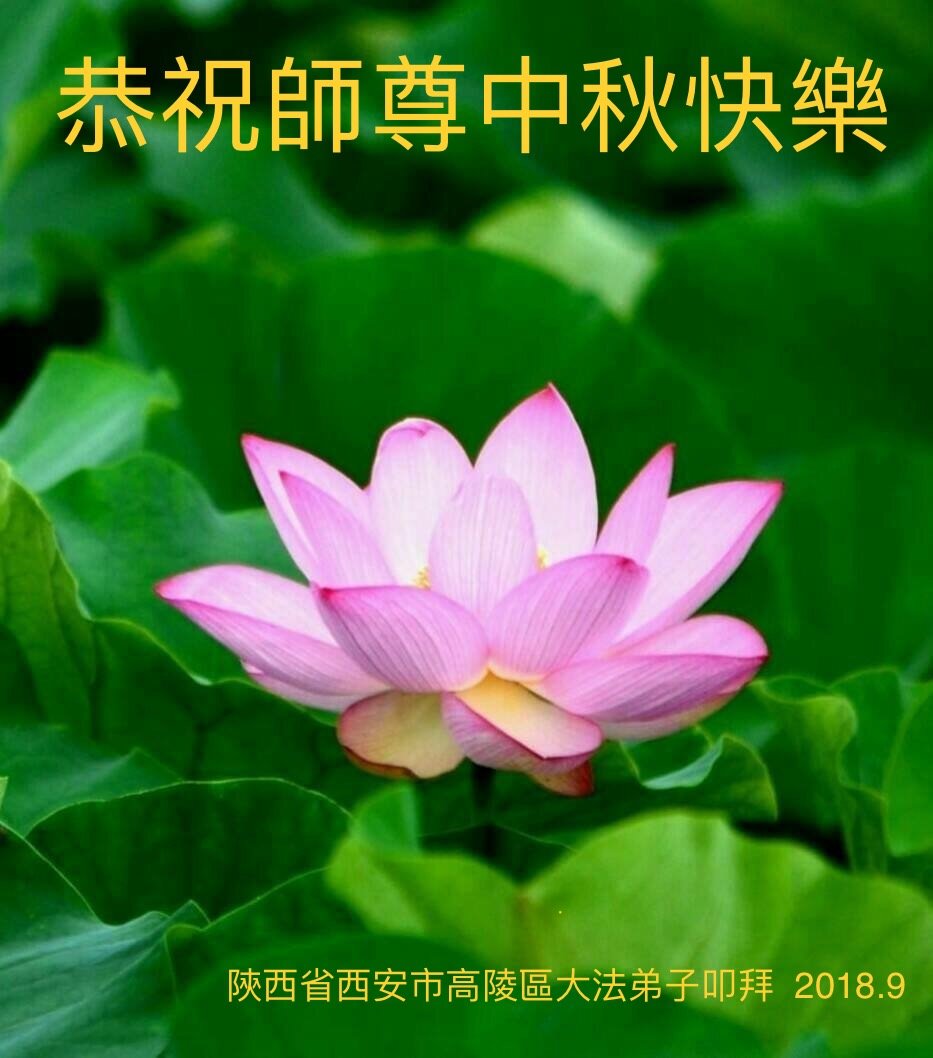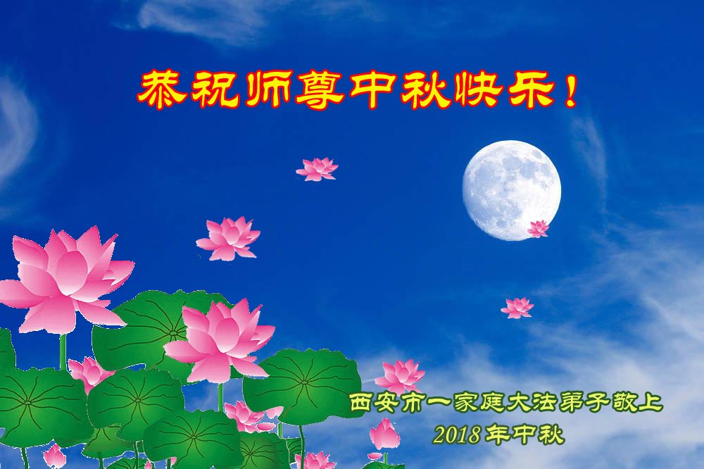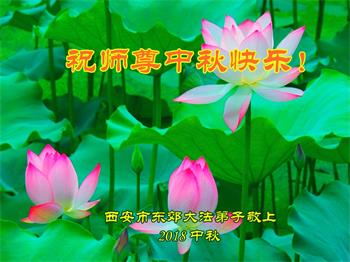 感恩师尊,思念师尊,叩拜师尊。中秋添正念,再精進! 陕西省西安市西郊大法弟子敬祝师尊2018年中秋节好!