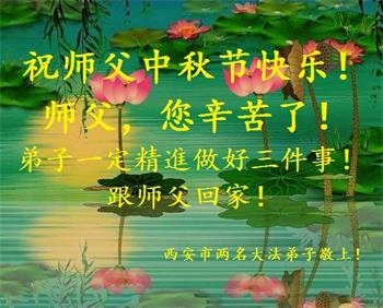 陕西省西安两名大法弟子恭祝师父中秋节快乐!
