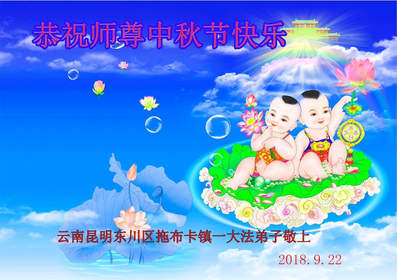 云南各民族大法弟子恭祝师尊中秋快乐! 2018年9月22日 云南昆明市官渡区大法弟子恭祝师尊中秋快乐!
