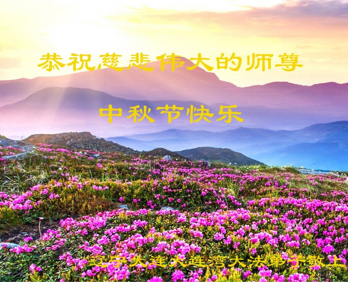 光阴如转轮周而复始,转眼又到了收获的金秋时节。大法洪传苍宇二十六载,万物皆受益,明真相得救度的众生无限感恩感谢师尊,感谢大法的悲慈苦度!师父用巨大的付出为众生又延续了一个可得救的金秋,在此我们大连高新园区的全体大法弟子叩拜恩师,师父您辛苦了!祝师尊佳节快乐!师父,我们跟您闯过了十九个正法的日日夜夜,在今后不太长的正法途中,我们决心学好法,正念形成整体,在修好自己的同时,救度众生,完成史前大愿。让师尊少一份操劳,多一份欣慰,满载众生随师还。再次祝师父节日愉快! 辽宁大连市大连湾大法弟子恭祝慈悲伟大的师尊中秋节快乐!感谢师尊的慈悲苦度!