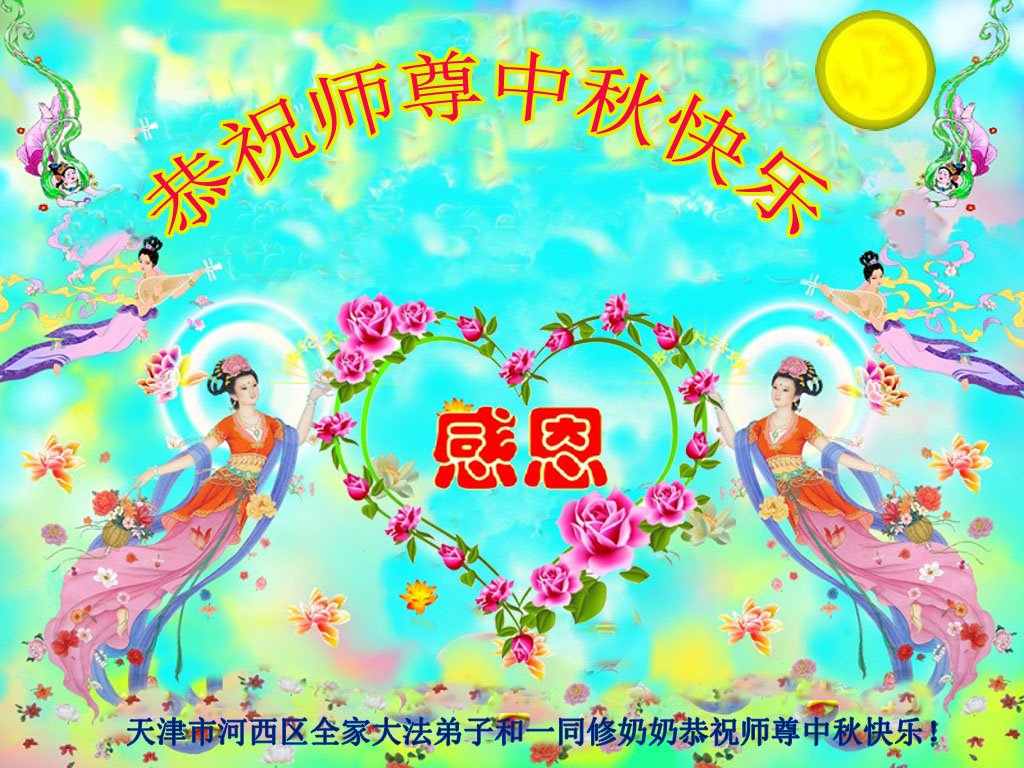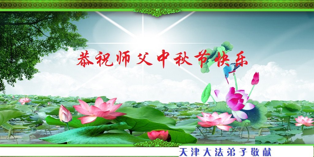 在这历史关键时刻,作为大法弟子要学好法、修好自己,完成使命,用慈悲善念救度一切可救度的众生。请师尊放心。 天津官港全体大法弟子祝慈悲的师父中秋节快乐!