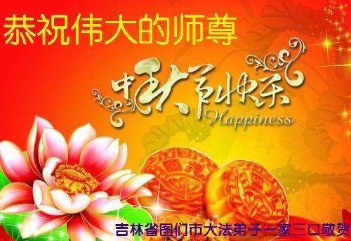 吉林省延边州图们市大法弟子一家三口敬贺师尊中秋节快乐!