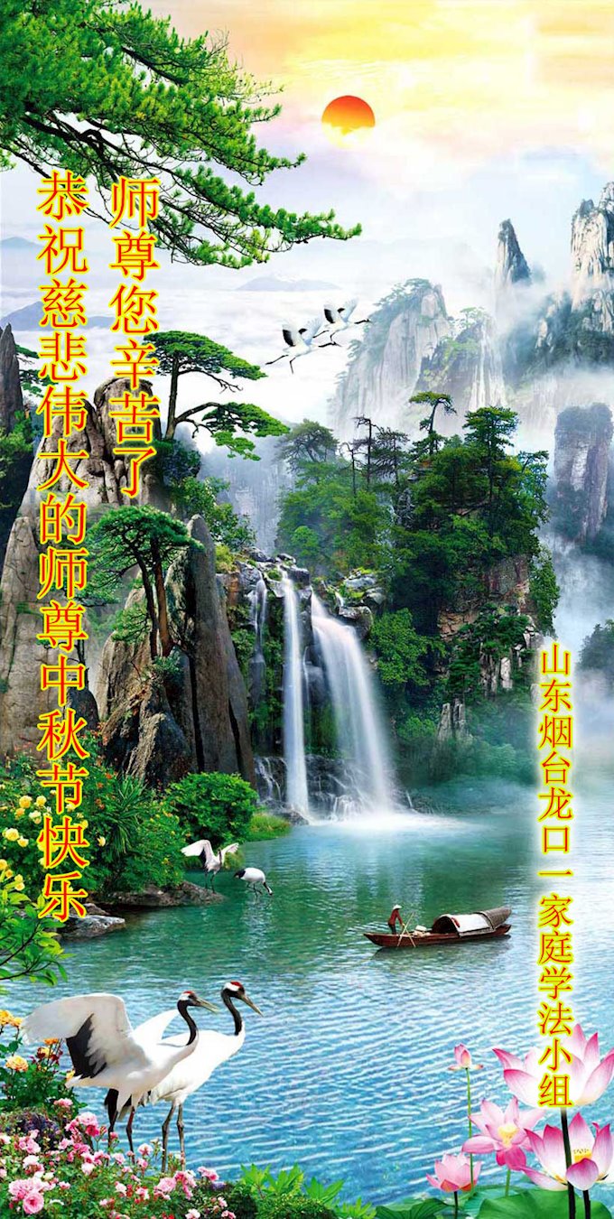 山东烟台龙口一家庭学法小组大法弟子恭祝师尊中秋节快乐!