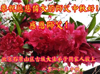 北京、辽宁盖州大法弟子恭祝师尊中秋快乐!