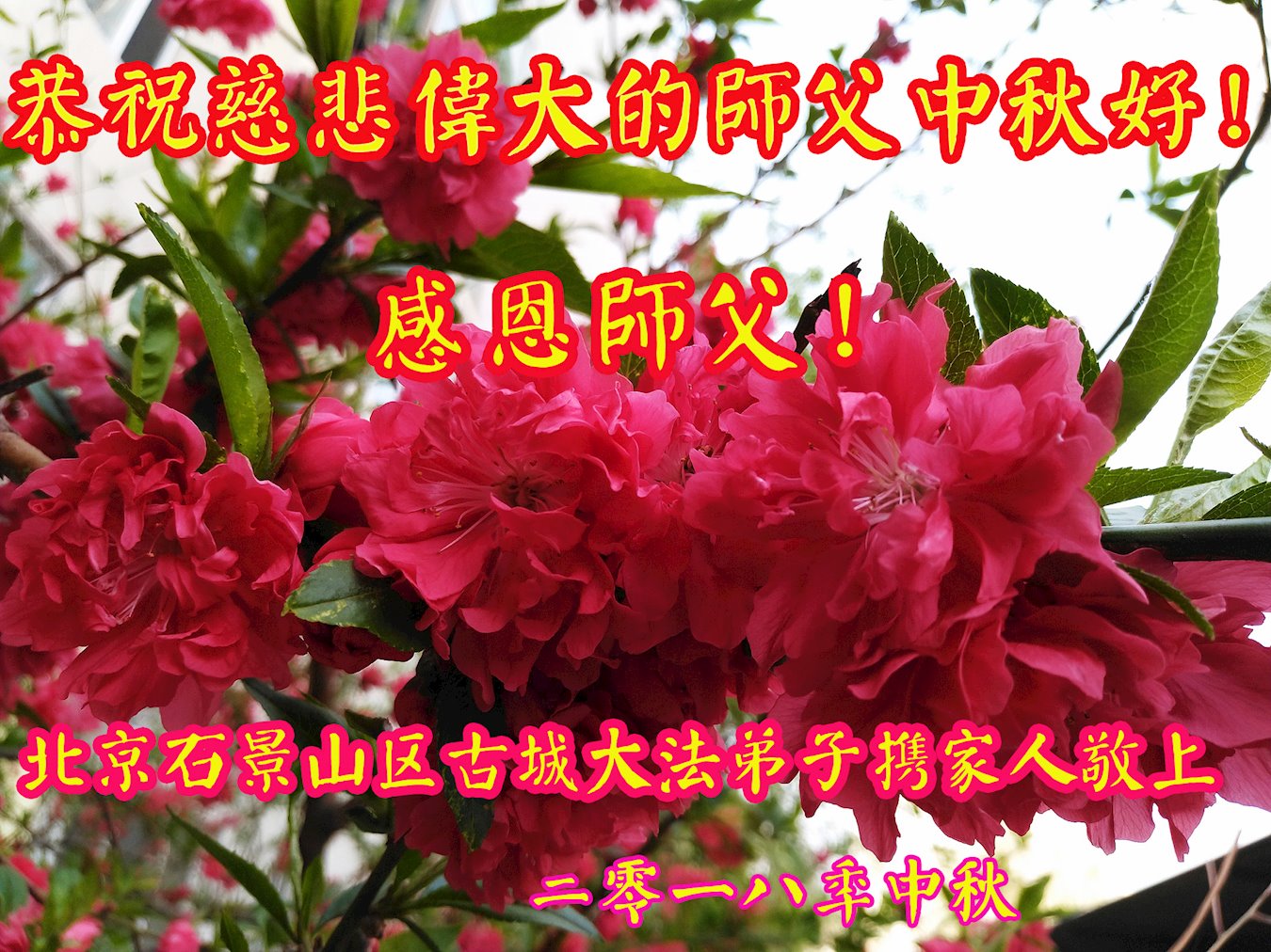 北京石景山古城大法弟子携家人恭祝师父中秋好!