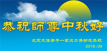 北京大法弟子一家三口携幼儿恭祝师尊中秋好!