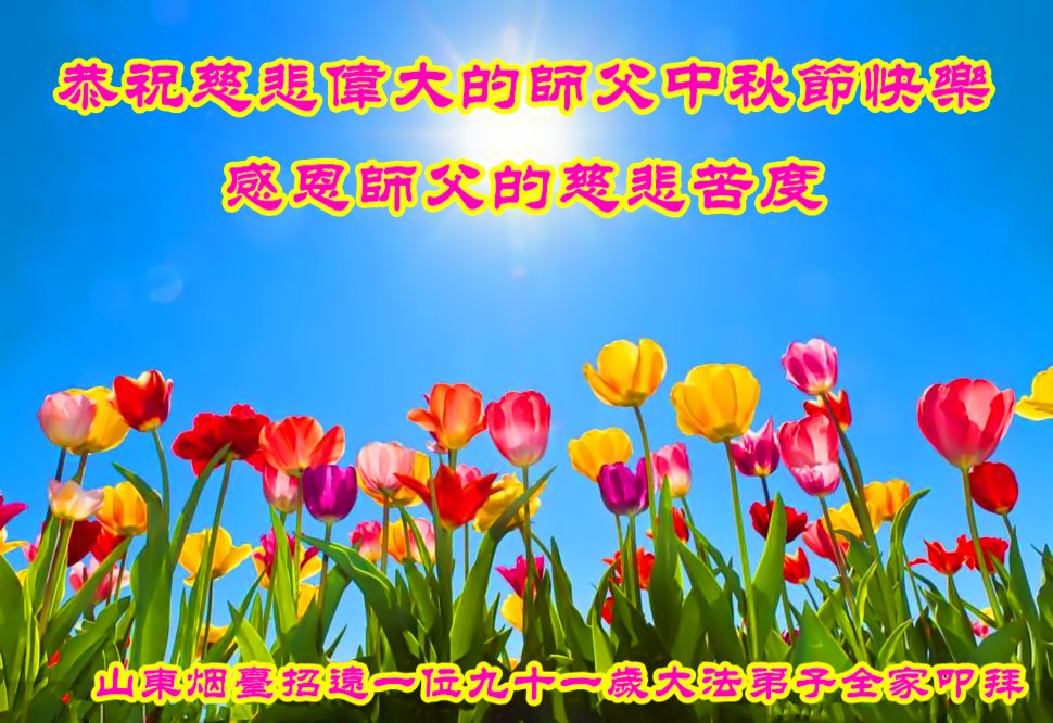 感谢师尊慈悲救度,弟子定听师尊的话,做好三件事,兑现史前誓约。 山东省烟台市招远市一位九十一岁大法弟子全家恭祝慈悲伟大的师父中秋节快乐!