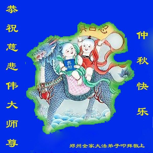 师尊辛苦了!弟子们想念师尊!盼望师尊早日回到大陆和弟子们团聚!谢谢师尊的慈悲救度!请师尊放心,弟子一定听师尊的话,修好自己,多救众生,跟师尊回家! 河南省郑州一位大法弟子恭祝师尊中秋节好!