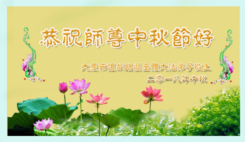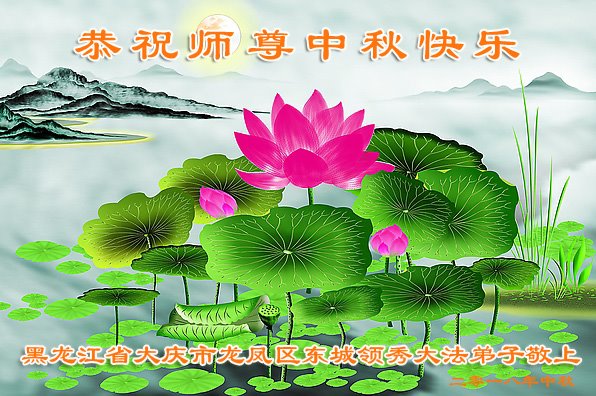 师尊好!又是一年的中秋佳节,我们非常想念师尊!祝师尊中秋节快乐!能成为大法弟子,我们感到非常荣耀和幸福。我们大法弟子不忘使命,讲真相、救众生,努力做好三件事,彼此沟通,互相配合,共同精進,圆满随师还。 大庆市龙凤区东城领秀大法弟子 二零一八年八月初十 黑龙江大庆市采油三厂全体大法弟子恭祝慈悲伟大的师父中秋节好!