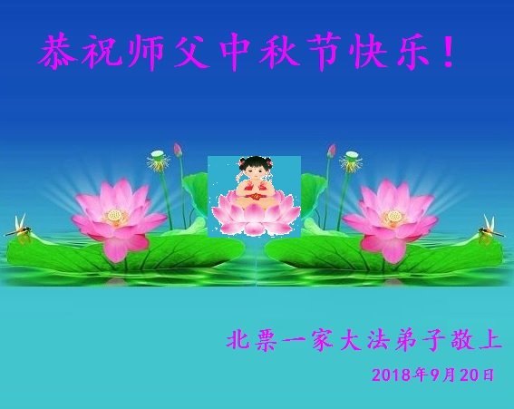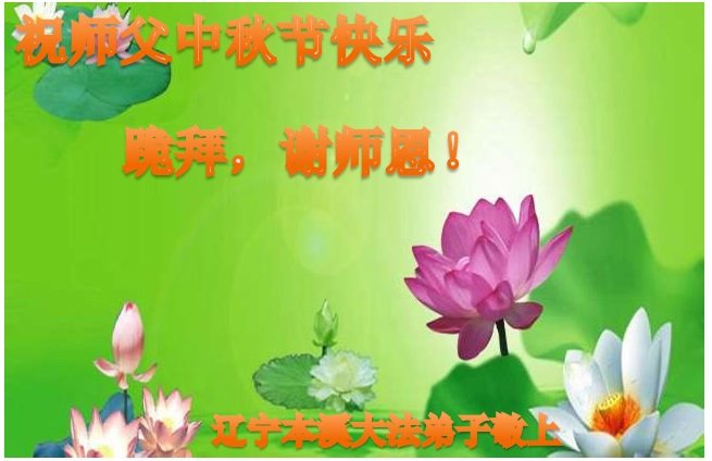 有师在苦也甜 千家万户真相传 有师在难也干 众生得救喜笑颜 有师在记心间 心莲齐开威力显 有师在信师先 佛法无边神通展 弟子感谢师父救度,师父保重身体,弟子恭迎师父早日回国大团圆! 辽宁省本溪县清河镇清河城大法弟子恭祝师尊中秋快乐!