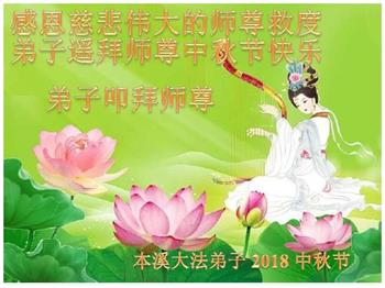 在中秋来临之际,弟子跪拜师尊!弟子自知修炼中还有许多不足,感谢师尊无时不在的看护着弟子!保护着弟子!弟子今后努力做好该做的,精進实修,弟子叩拜! 辽宁省本溪市大法弟子向慈悲伟大的师尊问好!恭祝师父中秋快乐!