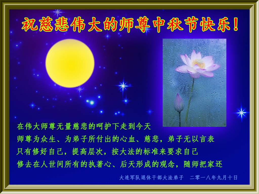 恭祝慈悲伟大的师尊中秋佳节快乐!师尊辛苦了!重庆部队学法小组弟子叩谢师恩! 辽宁省大连军队退休干部大法弟子恭祝慈悲伟大的师尊中秋节快乐!