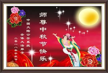 大陆公安系统大法弟子及家人同修恭祝慈悲伟大的师尊二零一八年中秋节快乐!