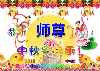 恭祝师父中秋快乐! 山东烟台大法小弟子敬上 二零一八年九月二十日 黑龙江省哈尔滨大法弟子恭祝师尊中秋佳节快乐!
