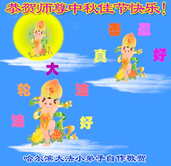 师恩浩荡,我们在师尊的呵护下,小弟子健康平安,青年弟子不断進步、不断成长,老弟子更加珍惜修炼的机缘,努力最好三件事,不辜负大法弟子的称号! 山东省青岛一大法弟子和小弟子恭祝师尊中秋节快乐!