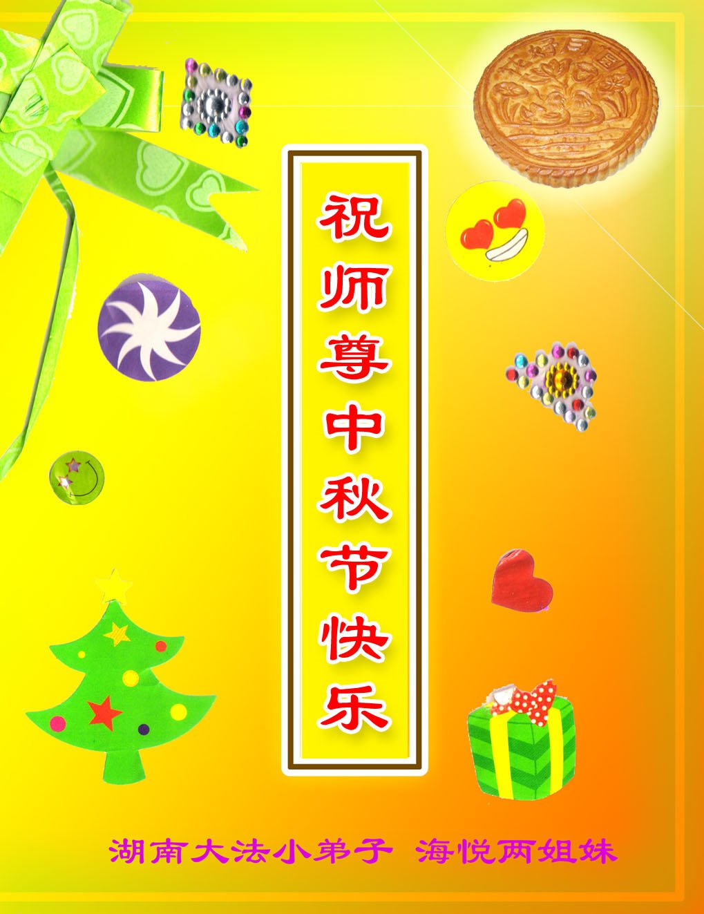 湖南省大法小弟子两姐妹祝慈悲伟大的师尊中秋节快乐!