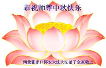 河北省张家口一大法弟子携全家四口恭贺伟大的师尊中秋节快乐!