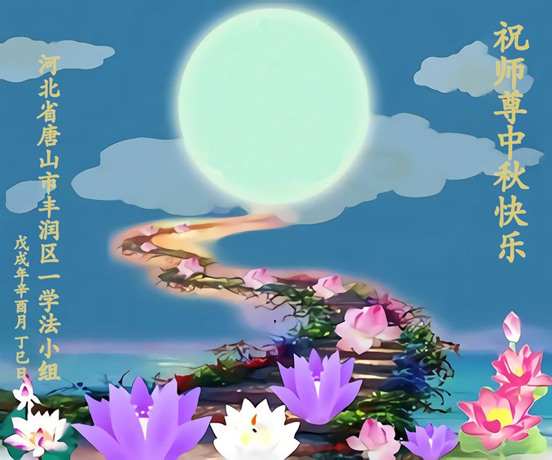 尊敬的慈悲伟大的师父好!祝师父中秋佳节心情愉快,少一份操劳,弟子虽然修的不好,今后一定跟上正法進程,做好三件事,走正走好师父安排的修炼道路,救度更多的众生。千言万语并作一句话:师父辛苦了!谢谢师父! 丰南区五位大法弟子敬上 河北秦皇岛市大法弟子恭祝师尊中秋快乐!