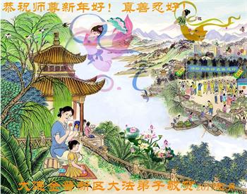 感恩师尊的慈悲救度和保护,师尊您辛苦了!弟子一定听师尊的话。 弟子再次跪拜祝慈悲伟大的师尊新年好、新年快乐! 辽宁大连华南四人学法小组大法弟子恭祝师尊新年好!