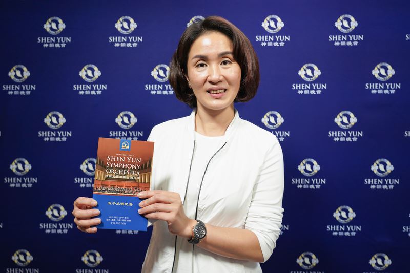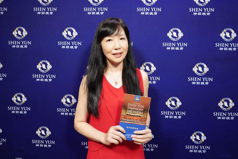 余明澄还深刻体悟到什么叫神恩,“神韵给我非常大的震撼,而且非常美丽的,整个心灵好像沐浴在一种圣迹里面。”他说,“真的很棒,好像是沐浴在神的恩赐当中,神迹展现的那种感觉,我特别有那种感觉。” 文艺会长:余音缭绕 如一颗星星撞进心坎 日台文化艺术交流会会长林慧谕表示:“神韵乐曲,是中国五千年历史的音乐,让我感动,让我震撼,泪光闪闪,她的力度足够让全世界看见”,“我第一次听到了中西合璧的(神韵原创)音乐,感受到她每一个音符,真的渗透到心里面,那种感动无法形容。这场音乐,未来一个月,都会余音缭绕不去”。  图12:日台文化艺术交流会会长林慧谕感受神韵乐曲的正向能量,把心整个正过来了。 |