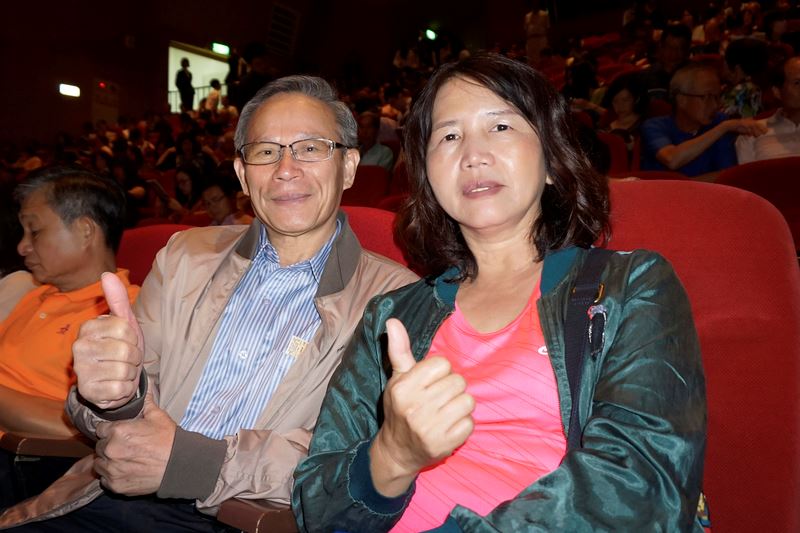 擅长拉二胡的洪增荣对神韵交响乐团中的二胡演奏比较敏感,“感动得流泪”,“非常感动,我没有看过这么好的乐团”,也担任民乐团指挥的洪增荣,特别观察了两位风格不同的指挥,精准的诠释曲子。他表示,和以前看过的指挥都不一样,可以学到很多。洪增荣说:“我会回去跟团员讲,这一生一定要听一次神韵交响乐。” 理事长:沐浴神恩 灵魂被唤醒 农业经理人协会理事长余明澄伉俪聆赏神韵交响乐后盛赞:“聆听这么棒的音乐,细胞都复活了,灵魂被唤醒。”他表示,深切感受到神韵音乐仿佛是来自宇宙空间一种神奇的力量,“从头顶贯穿全身,有一种热流贯通、通电的感觉,感觉是一种能量,宇宙的能量,震撼的、正能量的产生。确实如神迹般,力量很特别、很强烈,那种感觉很震撼。”  图11:农业经理人协会理事长余明澄(左)形容聆听神韵音乐后,细胞都复活了,灵魂被唤醒。 |