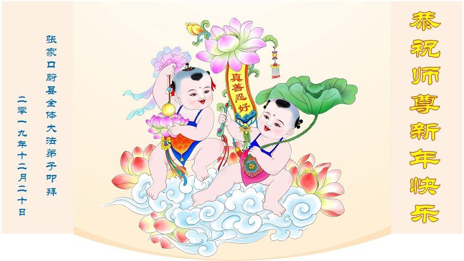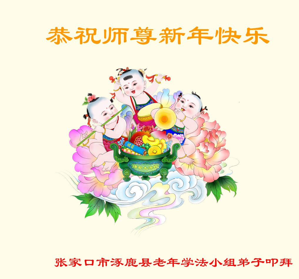 【明慧网二零一九年十二月二十九日】 河北省张家口市涿鹿县老年学法小组大法弟子恭祝师尊新年快乐!