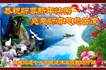 山东省烟台市招远市七十九岁退休高级教师大法弟子恭祝师尊新年快乐!
