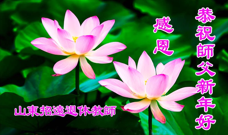 山东省烟台市招远市两位退休教师大法弟子恭祝慈悲伟大的师父新年好!