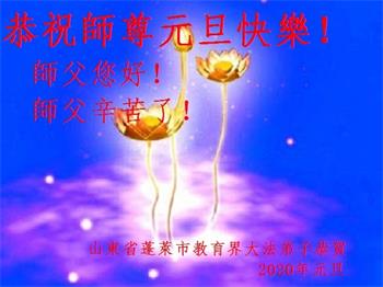 山东省烟台市蓬莱市教育界大法弟子恭祝慈悲伟大的师尊元旦佳节快乐!