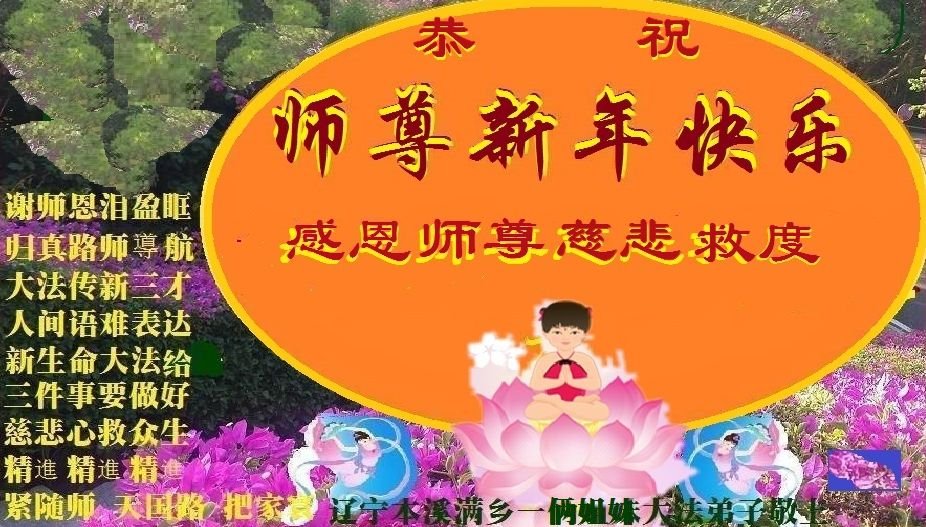 谢谢师尊慈悲救度! 谢谢师尊一路保护! 辽宁省本溪市满乡全体大法弟子恭祝慈悲伟大的师尊新年快乐!