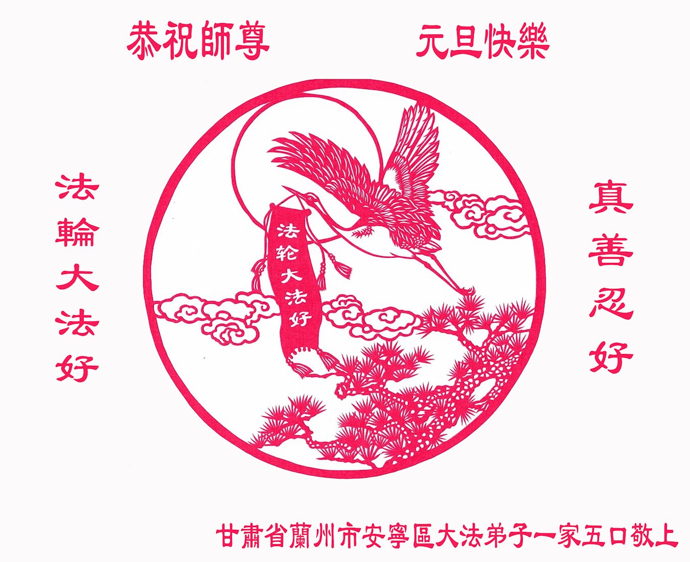 甘肃省兰州市安宁区大法弟子一家五口恭祝师尊元旦快乐!