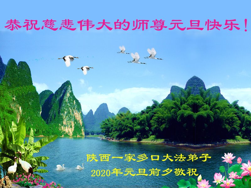 陕西省一家多口大法弟子恭祝慈悲伟大的师尊元旦快乐!
