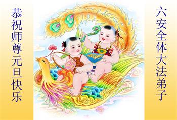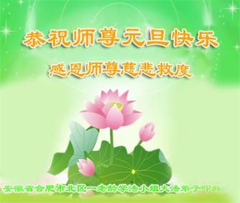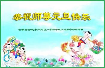 师尊苦度我们、看护我们辛苦了!我们一定修炼如初、多学法、做好三件事跟师尊回家,祝师尊新年快乐! 安徽某县8个学法小组敬上 安徽合肥南区4名老年大法弟子恭祝师尊新年好!