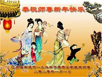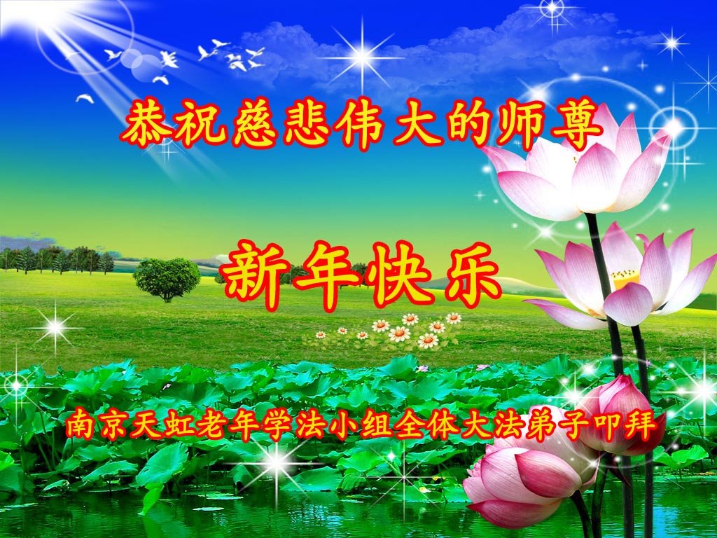 在新的一年里,一定做好师父所要的,努力学好法,修好自己,多救人,坚修大法,跟师父回家, 江苏省南京市法轮大法弟子恭祝伟大师尊新年快乐!