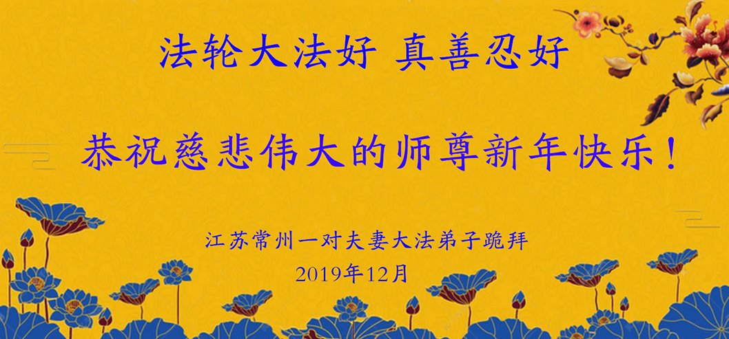 恭祝师尊新年快乐!师尊辛苦了,弟子们磕谢师恩!我们要在正法最后的有限时间,做好三件事。 江苏常州一对夫妻大法弟子恭祝慈悲伟大的师尊新年快乐!